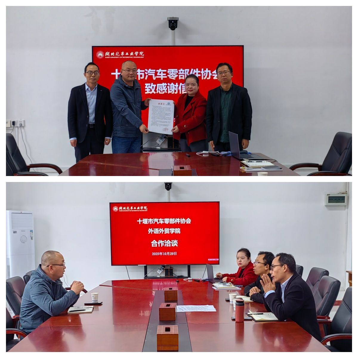 开展合作洽谈,并就学院五名师生在2025上海华墨国际汽配展期间所做的卓越服务工作致感谢信。