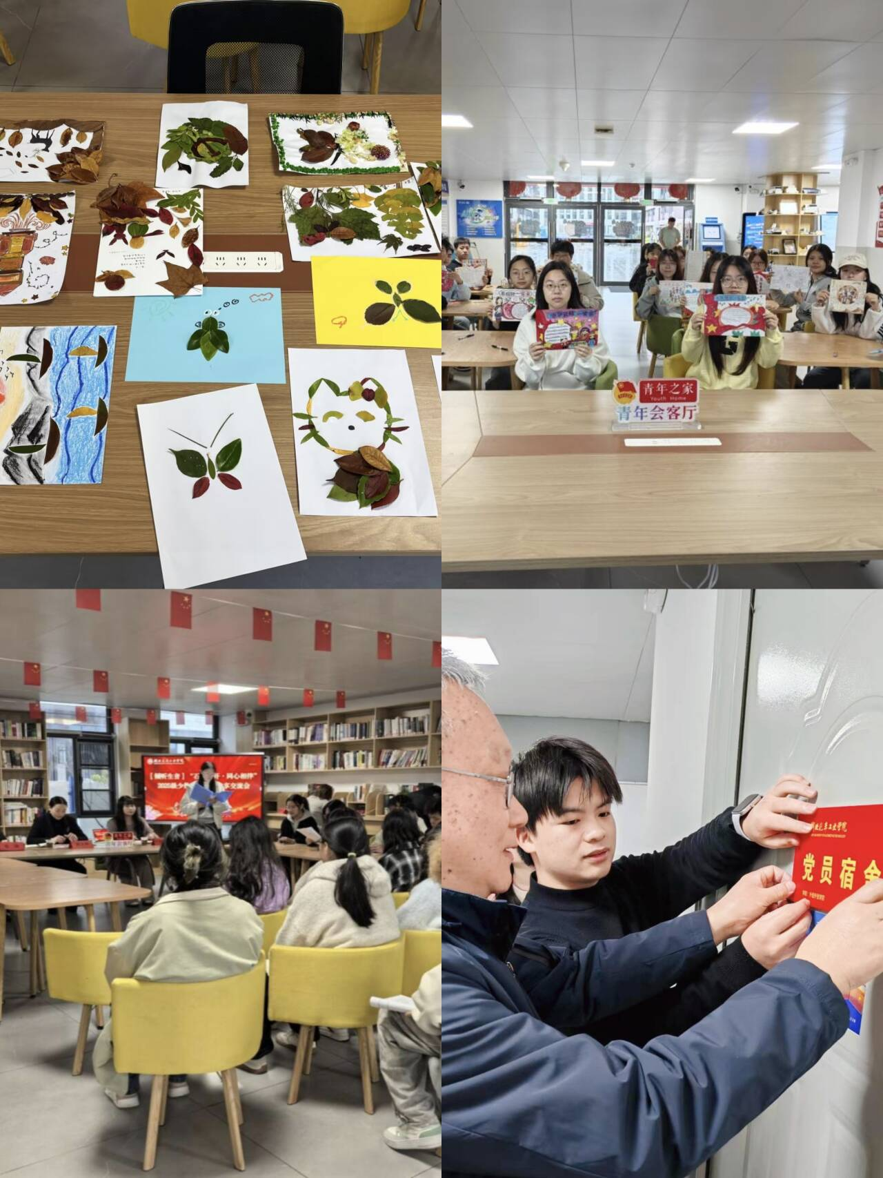 学院将实践育人与社区建设深度融合,通过丰富多样的活动培育学生社会责任感与综合素养。在民族团结教育方面,举办少数民族学生交流分享会、“铸牢中华民族共同体意识” 文创作品征集活动,增进各民族学生情谊,厚植家国情怀。在志愿服务与劳动教育领域,组织志愿者走进社区开展周末课堂,为儿童提供外语辅导与兴趣培养服务;开展“以劳动与艺术践行环保育人”主题活动,引导学生变废为宝践行环保理念。同时,以文明宿舍评选、宿舍文化宣传、党员宿舍挂牌等活动为抓手,发挥学生党员先锋模范作用,营造文明和谐的宿舍环境,让一站式学生社区成为涵养优良校风学风的重要阵地。
